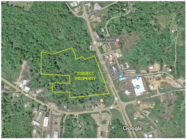 Property Description: Available 27 acre vacant parcel located on Highway 49 near East Broadway Street (old Highway 49) in Yazoo City, MS. Neighboring uses include 49 Junction Shopping Center (Verizon, Goody's, Sav a Lot, Hibbett Sports, Dollar Tree and Citi Trends), Wendy's, Double Quick, Best Western, El Sombrero and Bank Plus.
